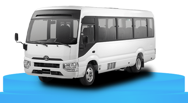 Toyota Coaster carries fifteen passengers with up to twenty-five luggage items comfortably.
